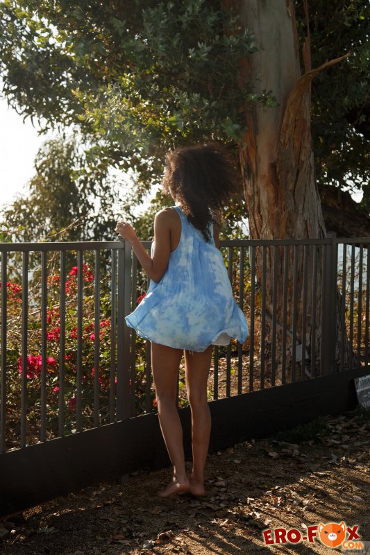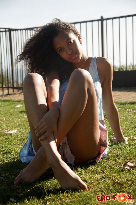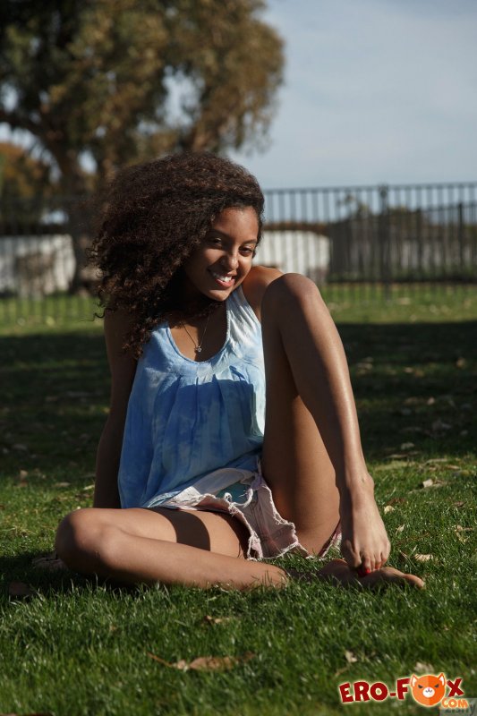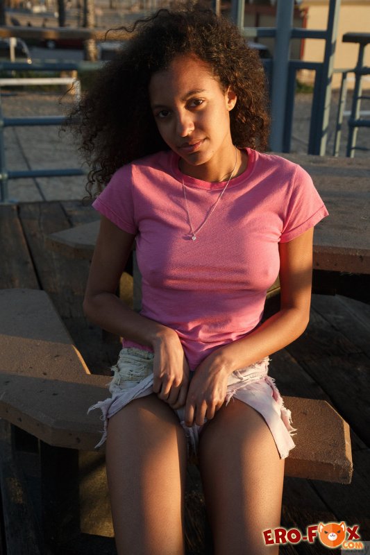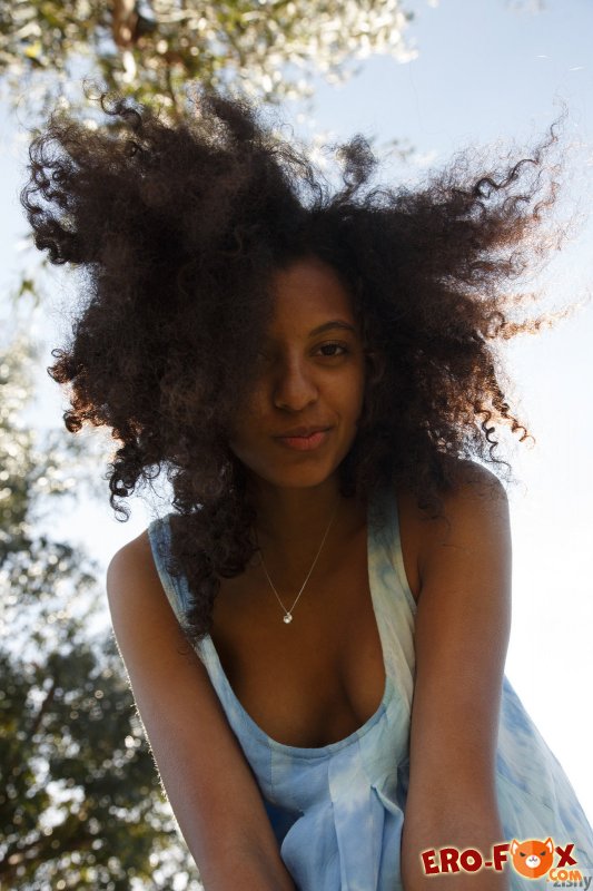 Соблазнительная негритянка прогуливается по улицам города и задирая майку показывает свою красивую натуральную грудь. Симпатичная афроамериканская девушка обладает упругим телом с аппетитными формами, кроме того у неё симпатичное личико. Это одна из немногих красивых негритянок, которая пробуждает сильное желание попробовать секс с темнокожей красавицей. На этих фото модель не покажет многого и не будет слишком откровенна, но её упругую грудь с аккуратными сосками увидеть удастся.
