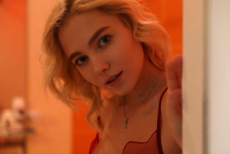 Чувственно извиваясь всем телом в самых откровенных позах, красивая девушка в прозрачном эротичном белье игриво залезает в ванну и поливает себя горячей водой из душа. Раздевшись до гола, мокрая блондинка с натуральными сиськами бесстыже выпячивает на камеру свою аппетитную нежную попочку и мельком засвечивает между булками бритую маленькую писю.