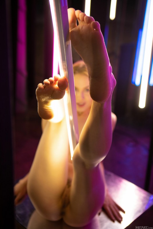 Чувственно извиваясь всем телом и постепенно стягивая с себя обтягивающий тело купальник, голая танцовщица с плоскими титьками развратно раздвигает рогатку перед камерой и в самых невероятных позах засвечивает свою бритую киску с возбуждающей прической на лобке.