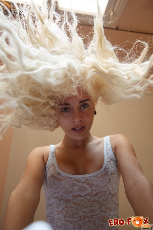 Светловолосая и невероятно сексуальная девушка в милыми личиком, расположившись в постели, принялась позировать, стараясь принимать максимально эротичные позы. В какой-то момент девица снимает боди и засвечивает маленькие сиськи с гладко выбритой киской и красивой попкой.