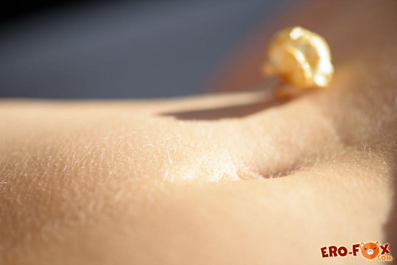 Милая домохозяйка с кучерявыми волосиками, выйдя на кухню и забравшись на стол, начала развлекаться, параллельно снимая трусики и майку. Во время своих соблазнительных игр, молодая красотка попивала напиток и обсыпалась попкорном. Таким образом, голенькая милашка получала удовольствие и заодно подчеркивала сексуальные части своего тела перед камерой, включая упругие сиськи и бритую письку.