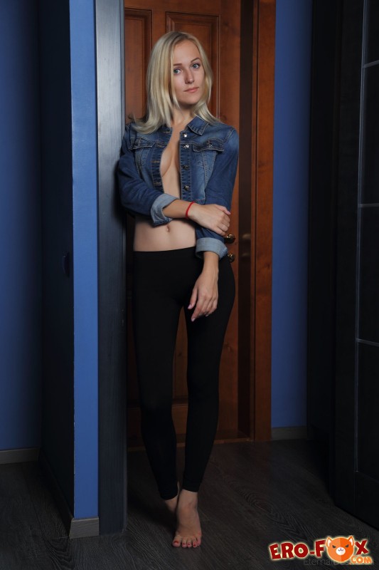 Симпатичная девушка снимает чёрные лосины и джинсовку, оказываясь совершенно голой. Оставшись без одежды, блондинка позволила нам взглянуть на её притягательную грудь, бритую письку и другие прелести, которыми не устаёшь любоваться, просматривая каждую новую фотографию с волнующим вдохновением.