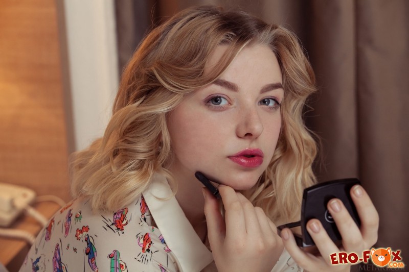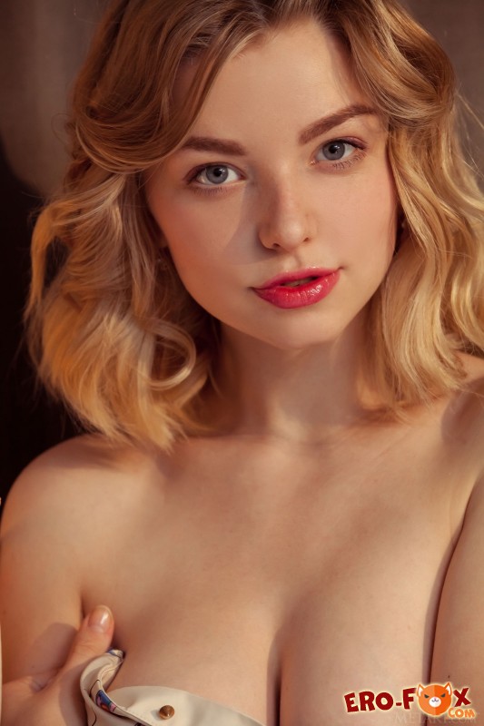 Сексуальная девушка с красивой внешностью и красными губками, располагаясь в постели, начала демонстрировать крупные натуральные сиськи, в процессе прикрываясь рубашкой. Позируя, стройняшка так же постаралась показать гладко выбритую письку и привлекательную попку, эротично становясь раком.