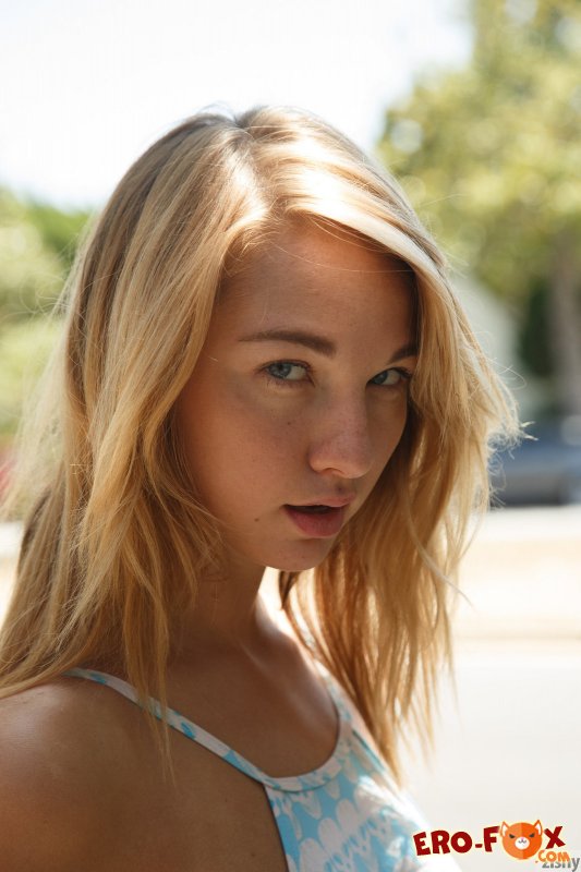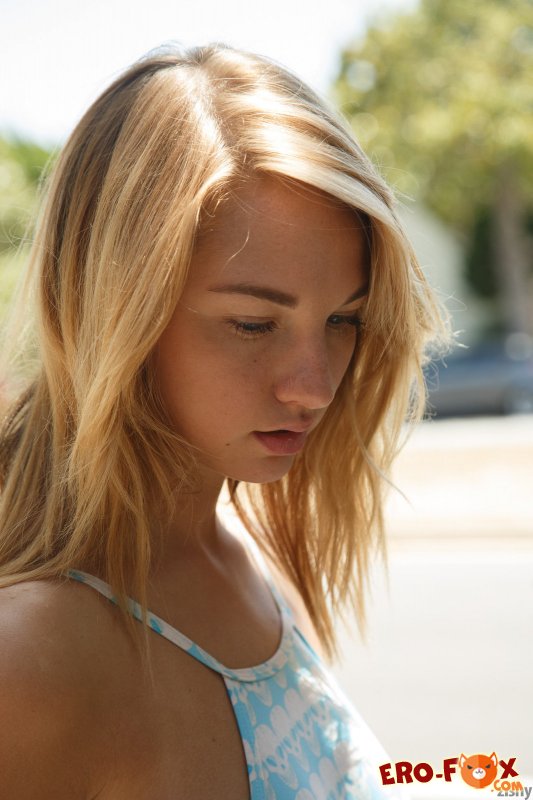 Перед нами сексуальная блондинка в мокром купальнике который впился в её мясистую попку между упругих ягодиц. Девушка же ничуть этого не стесняется и охотно демонстрирует это немного растопырив ягодицу руками. Затем действие переносится в какой-то магазин, где наша героиня оголяет большую сиську, но прикрывая её рукой...