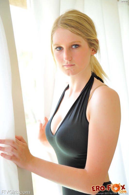 Симпатичная блондинка в облегающем черном платье без трусиков и лифчика начинает эротично позировать дома, в процессе приподымая юбку и засвечивая возбуждающую гладко выбритую письку. Наслаждаясь позированием, в какой-то момент молоденькая девушка грациозно прогнула спинку в позиции раком, выставляя сочную попочку с упругими ягодицами.