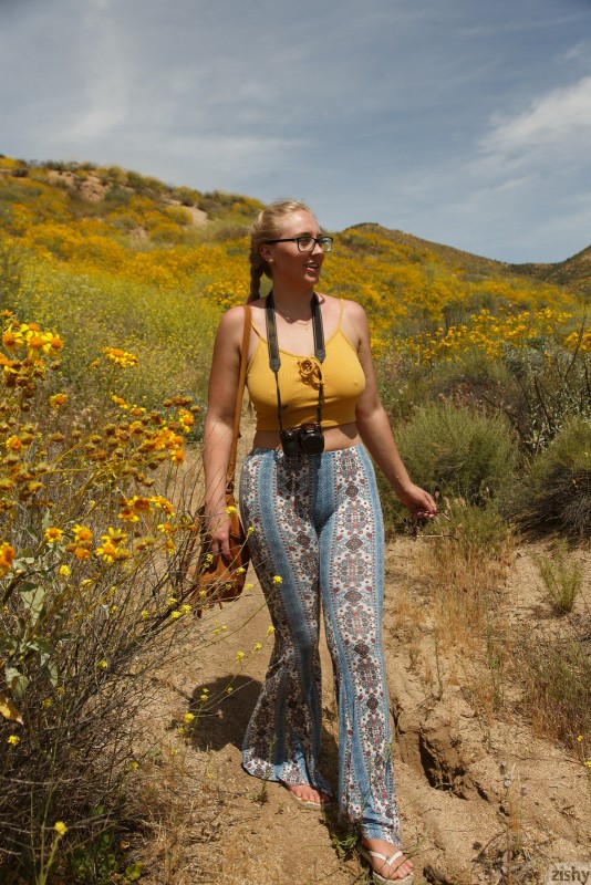 Выбравшись в поле, что бы сделать несколько ярких снимков дикой природы, пышная девушка со светлыми локонами волос и крупной попой, вскоре начинает и сама эротично позировать, оголяя некоторые части тела. Решившись побаловать нас своими прелестями, сексуальная пышечка помимо аппетитных ягодиц, так же засвечивает натуральные дойки.
