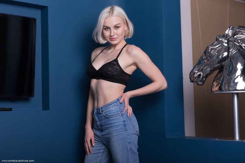Выбрав наиболее подходящее место у себя дома, привлекательная светловолосая девушка в джинсах и лифчике принимается эротично позировать и раздеваться догола. Конечно же в обнаженном виде сексуальная блондинка с упругими сиськами меняла разные ракурсы и лучше всего делала акцент на бритой письке и попке.