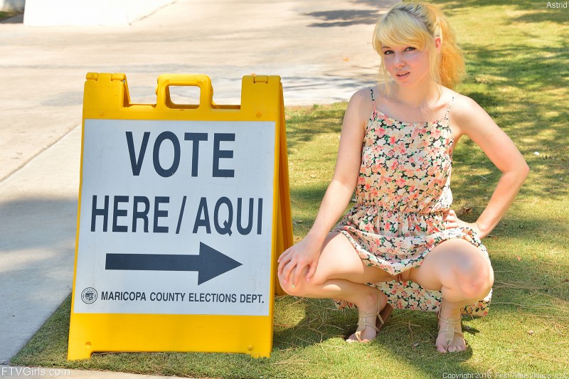 Каждый раз эта неугомонная потаскушка находит себе новое приключение. Вот и в этот раз она отправилась гулять по городу в коротком платье без трусов под ним. При любом удобном случая, желая поразить прохожих, девушка нагибалась будто бы обронив что-то, а её юбка задиралась обнажая голую попку с бритой киской.