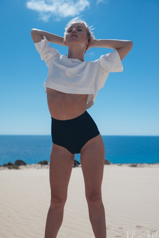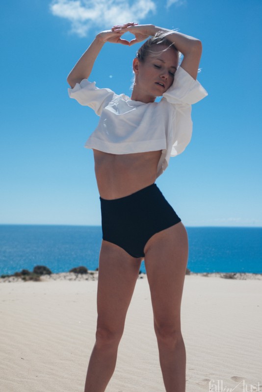 Молоденькая красавица с худенькой талией в высоких трусиках и кофточке эротично позирует и оголяет маленькие сиськи на пляже. Грациозно двигаясь и часто поднимая руки вверх, сексуальная девушка ощущала желаемое удовольствие и в процессе закрывала глаза, а так же возбуждающе приоткрывала ротик.