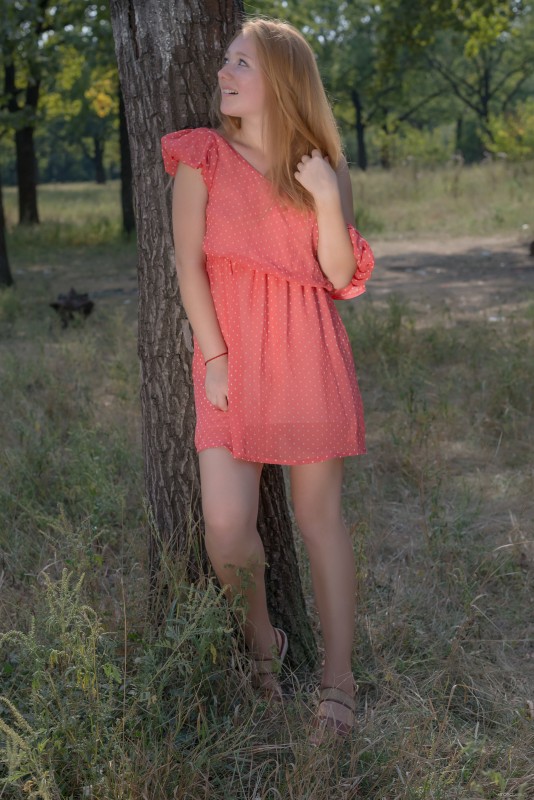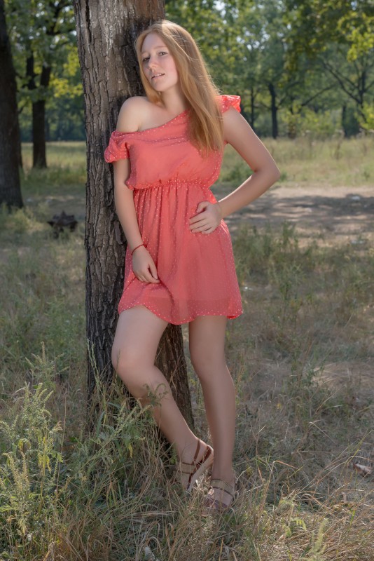 Начав позировать в лесу, привлекательная белокурая девица в коротком платье и белых трусиках вскоре не торопясь раздевается и улыбаясь нам, показывает маленькие сиськи с аккуратными сосочками. Соблазнительная блондинка позволила взглянуть и на другие прелести своего аппетитного тела, но сильно красавица не откровенничала...