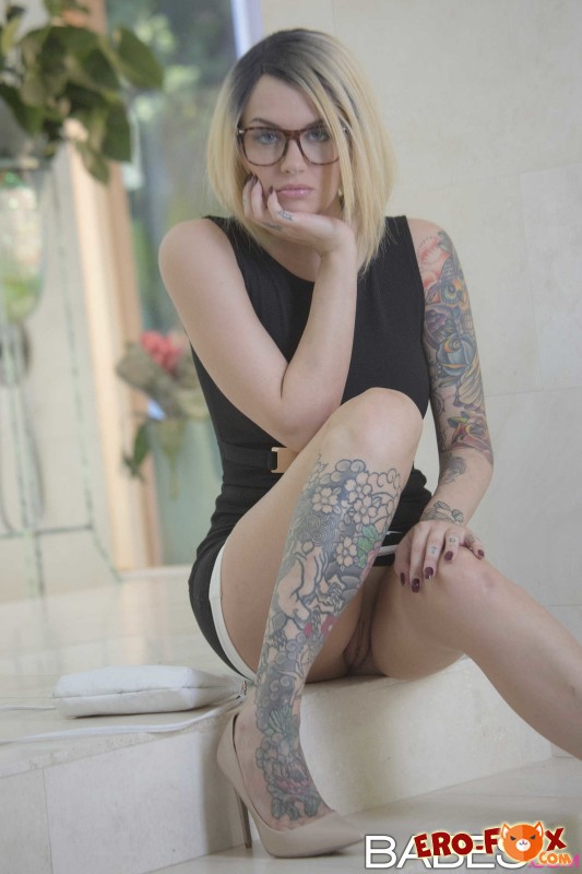 Сексуальная блондинка с бритой киской