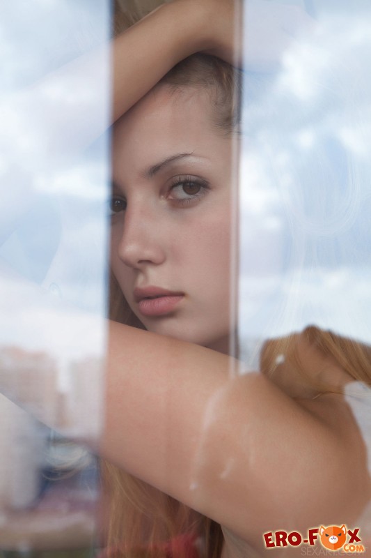 Ошеломительно красивая молодая девушка в чёрных чулках снимает красивые трусики на подоконники лоджии. Девушка остаётся совершенно голая и мы можем насладиться её упругим и возбуждающим телом, маленькими титьками и другими прелестями юной фигурки...