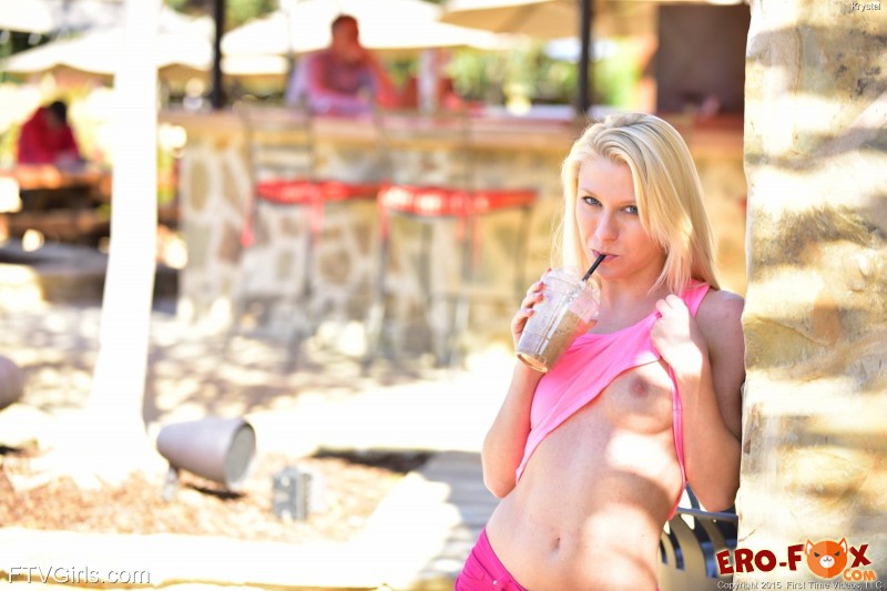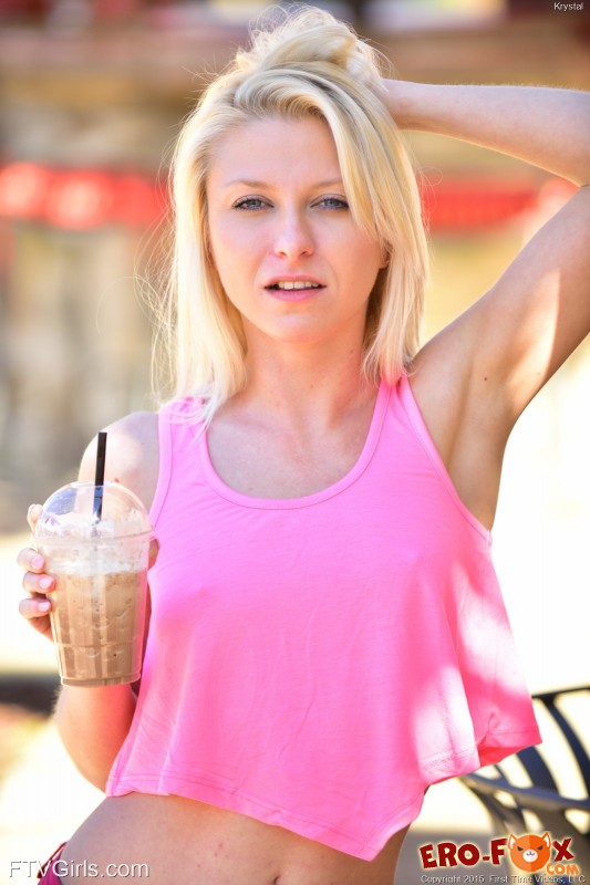 Обаятельная блондинка в свой выходной прогуливалась по улицам Америки и прямо там, не смущаясь прохожих позировала перед камерой в откровенном виде. Она отодвинула шортики и показала свою бритую писю, которая так соблазнительно выглядывала из под розовой ткани шорт. Так же красотка задрала майку и подарила нам завораживающий вид своих небольших, но манящих сисек...