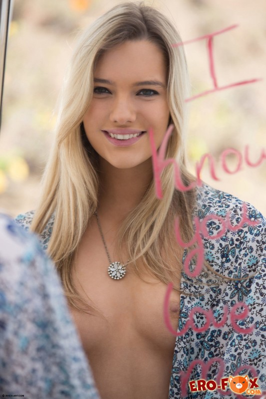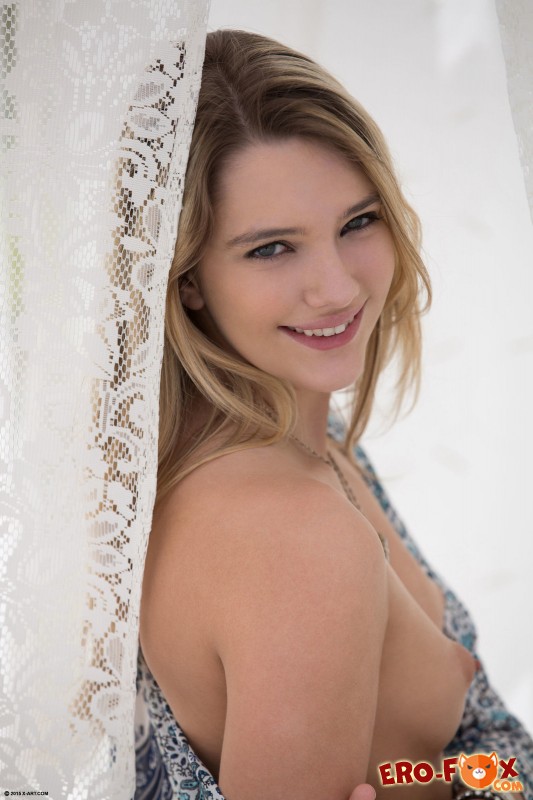Обворожительная и сексуальная блондинка разделась и обнажённая позирует в постели. Красавица в откровенных позах демонстрирует маленькие сиськи и другие свои прелести. У неё шикарная бритая киска, глядя на которую просыпается сильное возбуждение, жаль что нельзя потрогать...