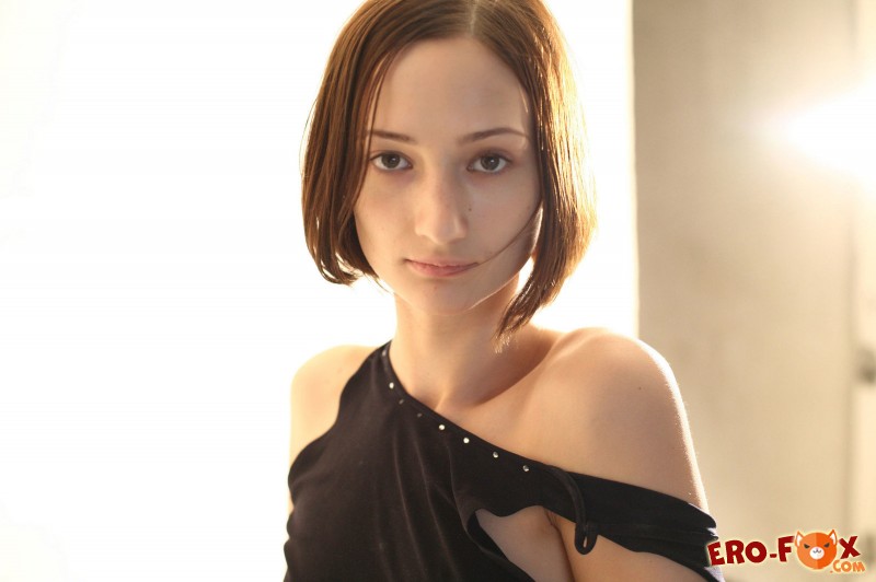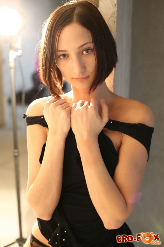 Соблазнительная девушка со стрижкой каре сняла трусики с платье, после чего, голая в одних только чёрных чулках показала свою возбуждающую бритую письку. Так же она позволила нам взглянуть на её маленькие сиськи с симпатичными сосками и упругую задницу...