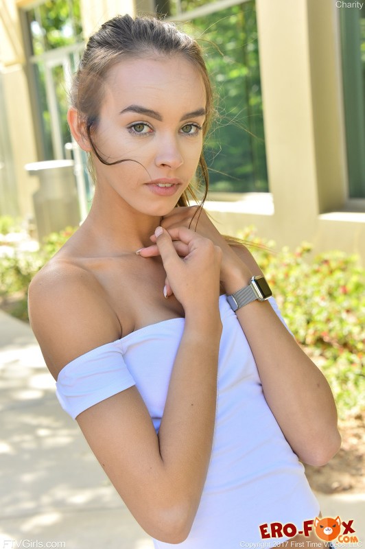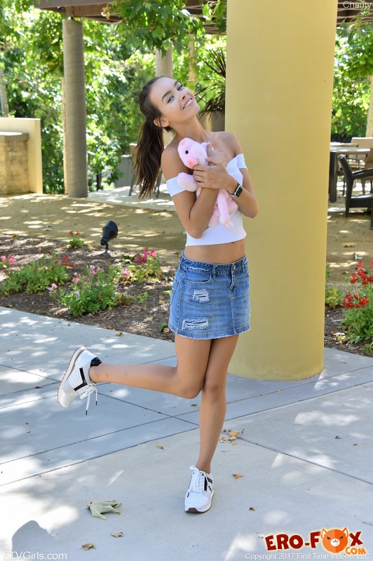 Очаровательная молодая девушка прогуливалась по улице без трусиков, где перед фото и видео камерой показала бритую писю под короткой мини юбкой, а так же упругую попку. Так же красавица продемонстрировала маленькую упругую грудь с красивыми сосками. А когда наша героиня сильно возбудилась, то не в силах сдержать страсть, она принялась мастурбировать прямо на улице, жадно лаская свою промежность пальчиками.