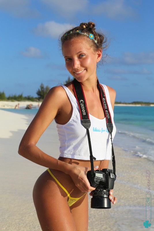 Развлекаясь на пляже с фотографом, худенькая молодая туристка с милой улыбкой раздевается догола перед его фотокамерой и соблазнительно позирует в море, кокетливо демонстрируя своё прекрасное тело. Таким образом стройняшка засветила гладенькую письку и плоские сиськи с набухшими от прохладного ветерка сосочками.