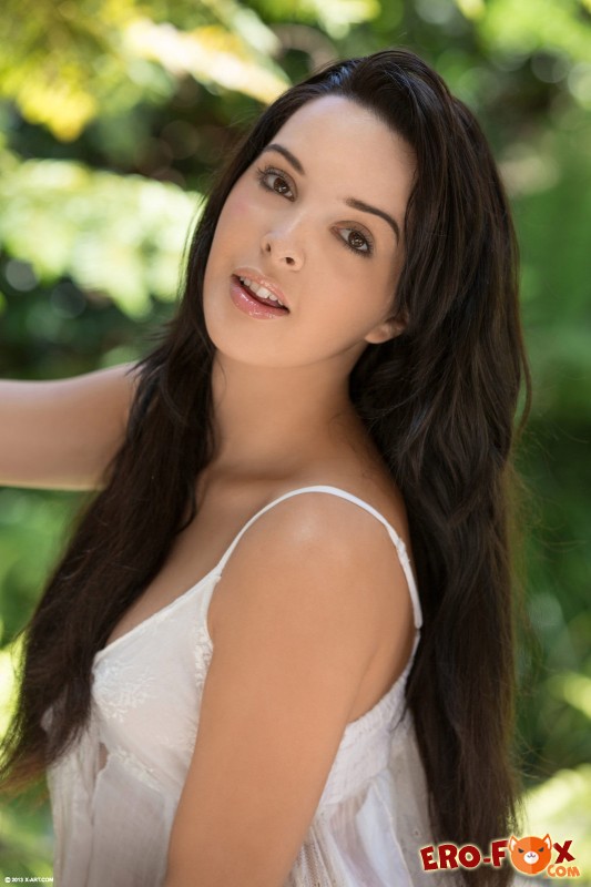 Эротичная брюнетка с упругим телом снимает сексуальное нижнее бельё, а именно белый пеньюар с кружевами. Оказавшись полностью голой, красотка усаживается в кресло, где раздвигает стройные ножки и выставляет на показ свою соблазнительную бритую киску, между делом проникая в неё пальчиками.