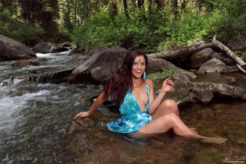 Быстро сняв с себя неудобное платье, загорелая знойная дикарка с волосатой пилоткой развратно позирует голышом на природе. Страстно извиваясь всем телом то на камнях, то на бревне, возбужденная баба с маленькой грудью делает все, что ей вздумается, и охотно выпячивает на камеру свои самые интимные места.