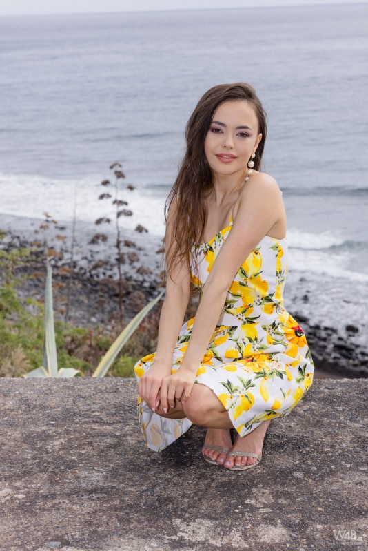 Позируя на свежем воздухе и не обращая внимания на глазеющих на нее людей, развратная барышня без трусов бесстыже задирает на себе короткое платье и во всей красе демонстрирует на камеру свою голую упругую попку и раскрытую между ног бритую пизду с темными половыми губами.