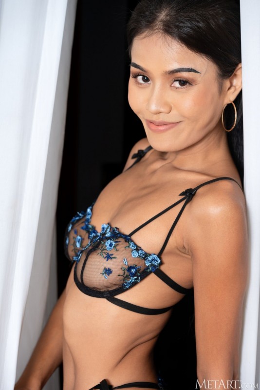 Устроив перед камерой эротическое шоу, жгучая брюнетка в просвечивающем красивом белье оголила свое загорелое тело с маленькой упругой попкой, а потом удобно устроилась на кровати в максимально открытой позе и во всех подробностях показала нам свою бритую темную пизду./size]