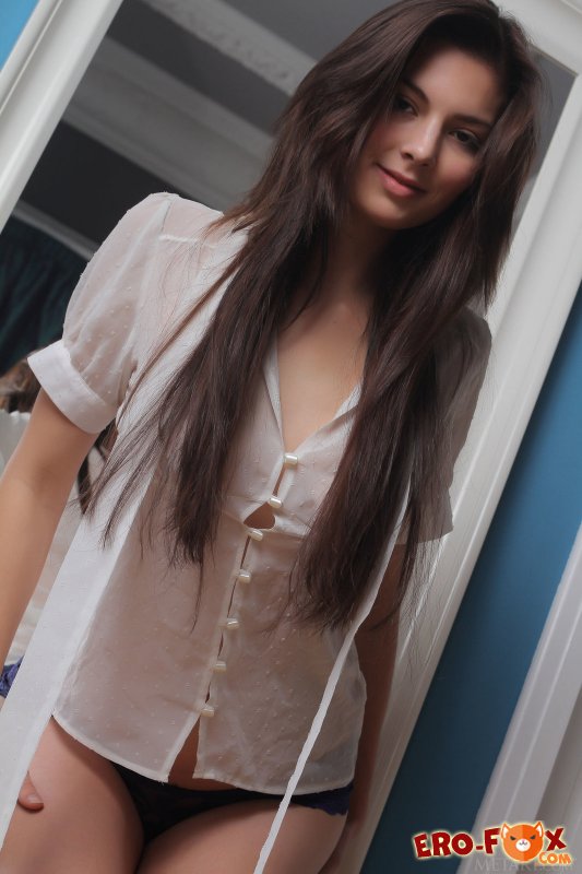 Обаятельная молодая девушка пришла с работы и пока переодевалась перед зеркалом сзади к ней подошёл друг и предложил эротический фото сет. Красавица сразу согласилась и принялась раздеваться на камеру. Через какое-то мгновение перед нами стояла девушка в белой блузке без трусов и демонстрировала себя со всех ракурсов. У девушки отличные данные и смотреть на её упругое тело одно удовольствие. Хочется так же обратить внимание что красотка сексуально смотрелась и в трусиках и снимать их было вовсе не обязательно.