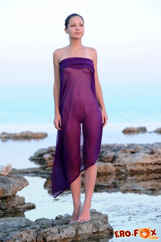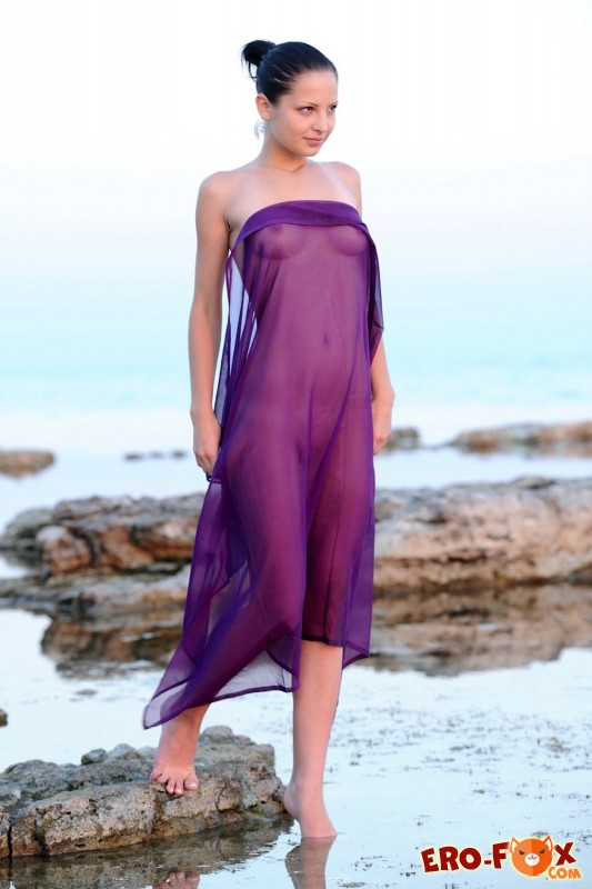 Обнажившись на диком пляже, симпатичная брюнетка показала маленькие сиськи с красивыми сосками и прочие прелести своего нагого тела. У красавица очень привлекательная бритая киска, аккуратная маленькая попка и ослепительная улыбка проникающая прямо в душу. Но прежде всего покоряет маленькая грудь молодой модели, пусть она и не велика, но бесподобно прекрасна...