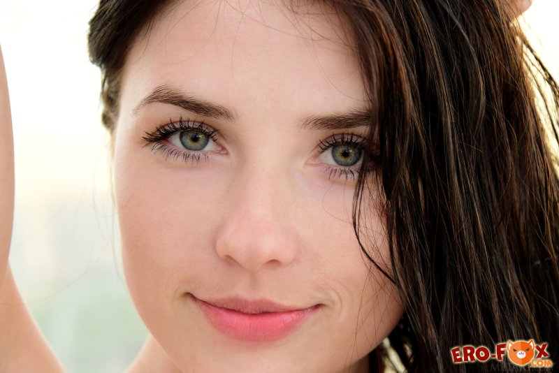 Ну просто невероятно сочная девушка с аппетитными сиськами и упругой попкой снимает платье и голая позирует перед камерой. Сперва брюнетка красуется на лавочке, а затем медленно перебирается в бассейн и уже мокрая смотрится ещё более сексуально.