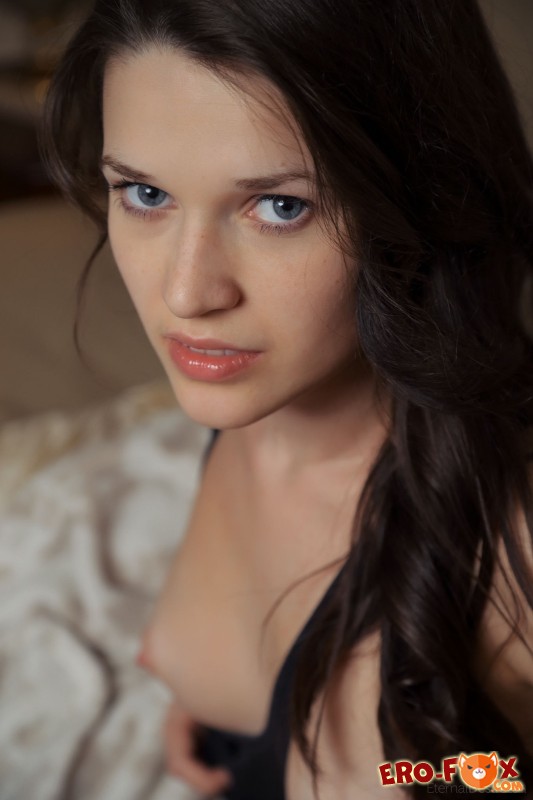 Лежа на диване и прикрываясь пледом, сексапильная девка в майке, но без трусиков, в какой-то момент берется засвечивать возбуждающую попку и бритую письку. Ощущая возбуждение и часто меняя ракурсы, красотка порой так же демонстрировала натуральные упругие дойки, параллельно строя глазки и приоткрывая ротик.