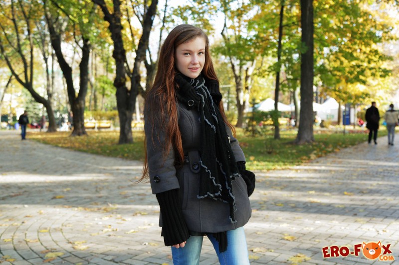 начинается всё с того что грудастая стройняшка прогуливается по осеннему городу, а затем резко перебирается к себе домой. там милая девушка раздевается и голая позирует на постели без скромности демонстрируя нам красивую бритую писю крупным планом, большую грудь и другие части своего худенького тела.