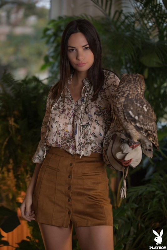Привлекательная молодая девушка устраивает эротическую фото сессию в стиле ню с животными, медленно раздевается и голая позирует с совой и змеёй. Лишившись трусиков, сексуальная брюнетка с красивой формы упругой грудью с радостью демонстрирует нам гладенький лобок и бритую письку, старательно строя глазки и мило улыбаясь.