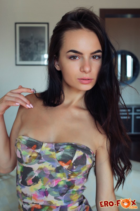 Горячая, стройная брюнетка снимает короткое платье и голая встаёт раком, поворачиваясь к камере голой попкой и бритой киской. В этой позе красотка смотрится безупречно, так и хочется овладеть этой сочной упругой попкой сзади.