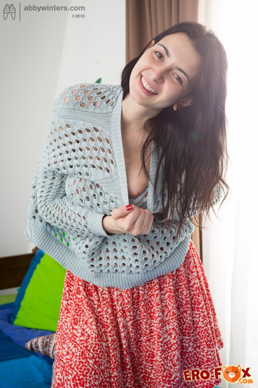 Игривая студентка устроила эротическую фото сессию в своей спальне, желая раздеться и продемонстрировать нам свои прелести. Сперва грудастая брюнеточка стянула кофточку, затем трусики из под юбки и наконец она сняла юбку оставаясь совершенно голой перед камерой.