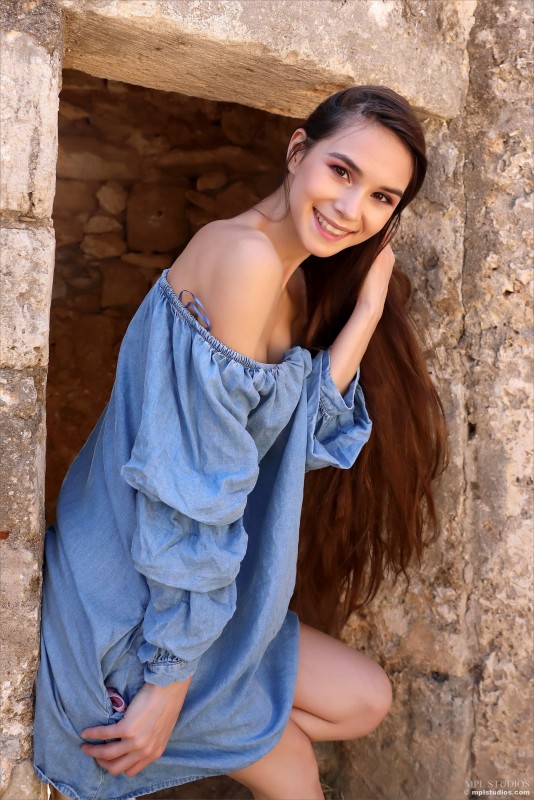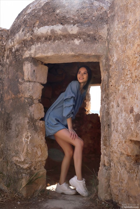 Забравшись в заброшенное здание, игривая длинноногая девушка без трусов дерзко задирает перед камерой свое короткое платье. Затем молодая брюнетка возбуждающе оголила миниатюрные упругие титечки и, раздвигая красивые ножки, охотно засвечивает бритую промежность с аккуратной маленькой киской.