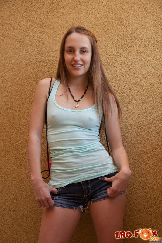 Сексуальная девушка появляется в коротких джинсовых шортах и майке без лифчика сквозь которую просвечивают упругие соски. Немного погодя красавица стянула шортики и осталась в стрингах возбуждая своим видом фотографа и нас.