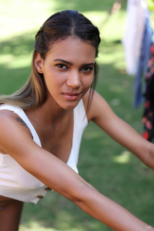 Начав эротично позировать летним днем на улице, латинская девушка с накаченной попой в белых трусиках и майке мило улыбалась и медленно обнажалась перед фотокамерой. Вскоре, сексуальная смуглянка все же раздевается и уже обнажённая игриво красуется перед нами, позволяя насладиться её симпатичной грудью с коричневыми сосками.