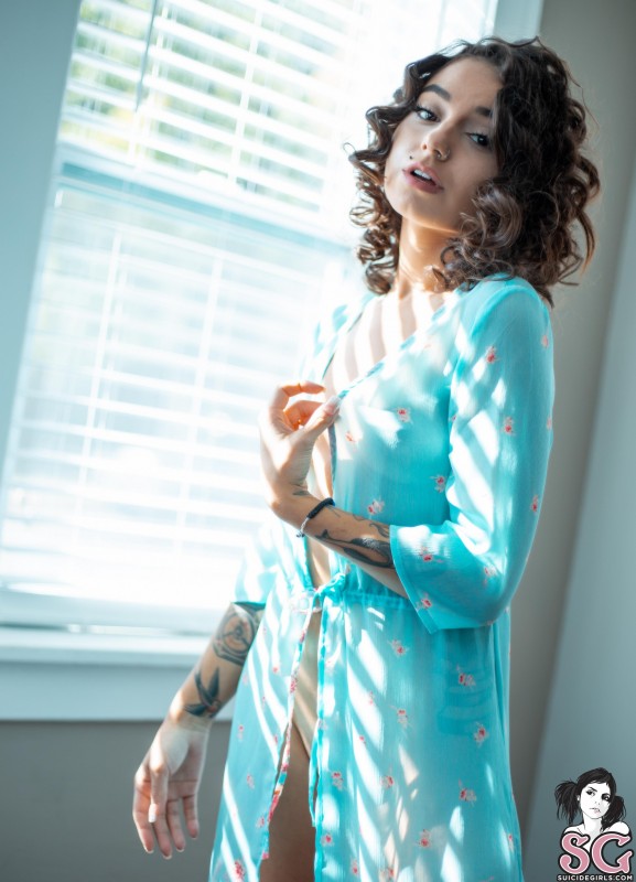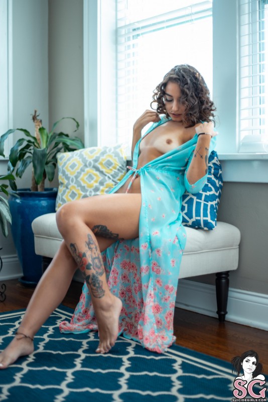 Игриво позируя перед камерой, страстная девица с татуировками по всему телу медленно снимает с себя длинный распахнутый халат и с удовольствием оголяет свои возбуждающие прелести. Развратная девица с разных ракурсов демонстрирует нам свое соблазнительное молодое тело с маленькими сиськами и сочной крепкой задницей.