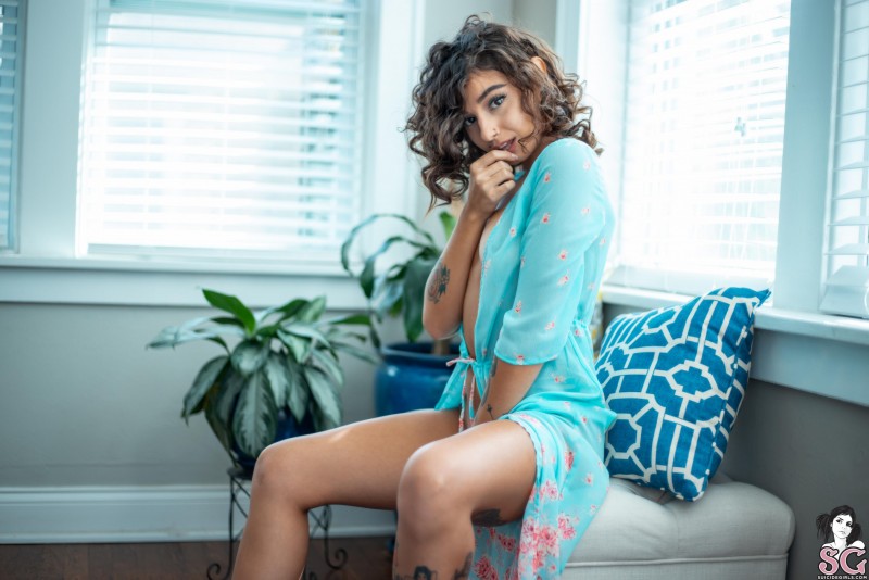 Эротика » Голые девушки » Страстная девица с татуировками снимает халат