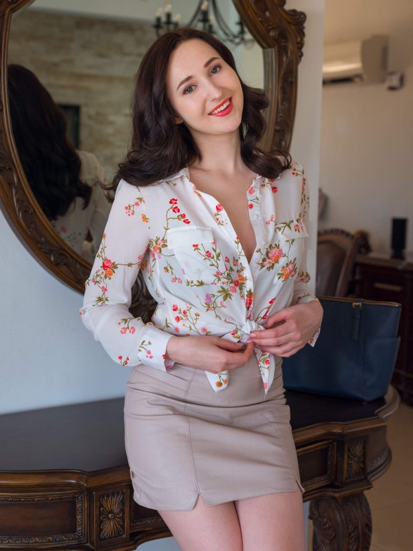 Вернувшись домой после работы и с удовольствием снимая с себя откровенную офисную одежду, развратная дамочка устроила стриптиз перед камерой и принялась энергично хвастаться своими возбуждающими прелестями. Совершенно ничего от нас не скрывая, длинноногая телка с удовольствием раскрывает свою рогатку и предлагает поскорей войти в ее бритую розовую пиздёнку.