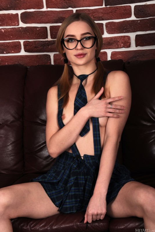 Эротика » Голые девушки » Очкастая заучка в мини юбке снимает трусики