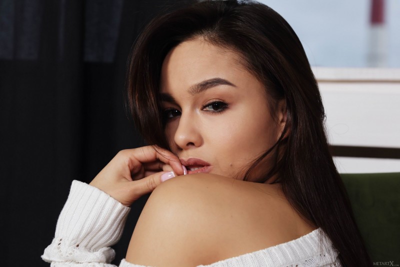 Эротично стянув с себя всю одежду и забравшись голышом в кресло, смуглая жгучая брюнетка с натуральными сиськами возбуждающе облизывает свои пальчики и на показ мастурбирует ими свою бритую сочную письку перед камерой, крупным планом выпячивая аппетитную жопку и во всех подробностях демонстрируя раскрытую промежность.