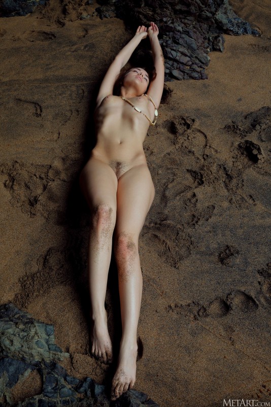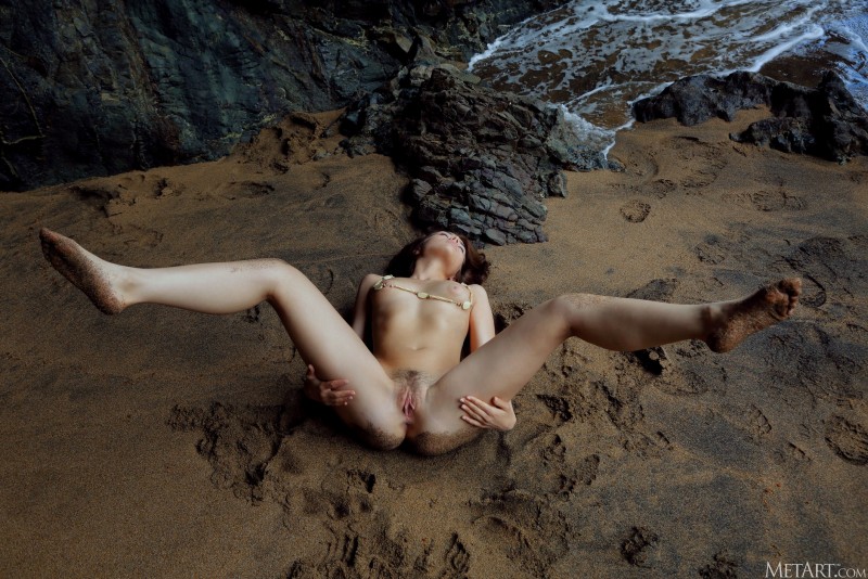 Развратно выставив на показ свои миниатюрные острые титьки, симпатичная голая детка также перед камерой светит своей волосатой писькой. Чувственно извиваясь всем телом на влажном песке, молодая шатенка похотливо выпячивает как можно ближе свои грязные возбуждающие прелести и с разных ракурсов раскрывает самые интимные места.