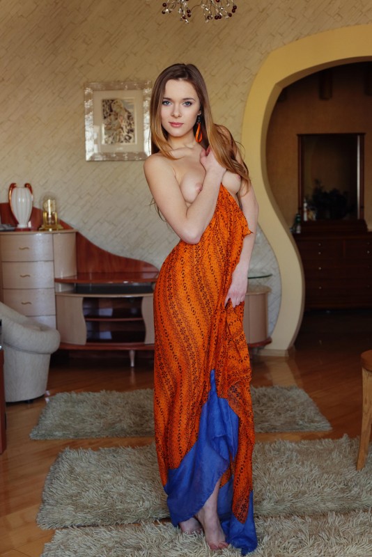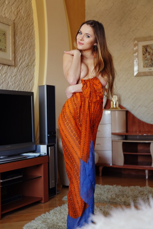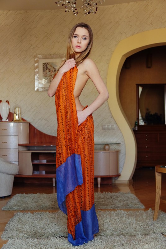 Безуспешно прикрывая свои прелести тканью, молодая обнаженная красавица переборола свою стеснительность и засветила на камеру бритую киску. Эротично извиваясь всем телом, стройная девушка с аккуратными упругими сисечками развратно выпячивает как можно ближе раскрытую промежность и просит заняться с ней сексом на полу.