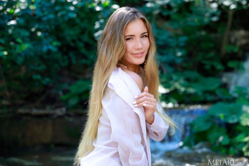 Молодая соблазнительная красавица эротично позирует в расстегнутой рубашке на голое тело на природе и кокетливо хвастается перед камерой своими миниатюрными прелестями. Развратно виляя упругой попкой, сексуальная детка с маленькой грудью без стеснения раскрывает свою нежную гладкую промежность и во всей красе демонстрирует нам маленькую розовую писю.