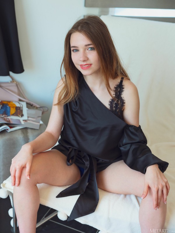 Безумно возбуждающе сняв с себя короткое платье и нижнее белье, голая соска с аппетитными натуральными формами охотно демонстрирует на камеру свои самые интимные места и, развратно раздвигая руками большие мягкие ягодицы, крупным планом засвечивает бритую сладкую писечку с розовыми половыми губками.