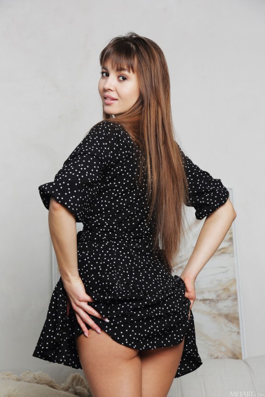 Страстно сорвав перед камерой короткое платье без нижнего белья и расслабленно развалилась на диване, сексуальная голая бабёнка с упругими сиськами без стеснения показала всем свою бритую розовую письку. Нежно поглаживая руками гладкую горячую кожу, возбужденная телка крупным планом тычется вперед аппетитной попкой и приглашает поскорей войти в ее влажную дырочку.