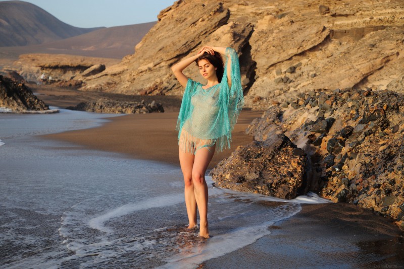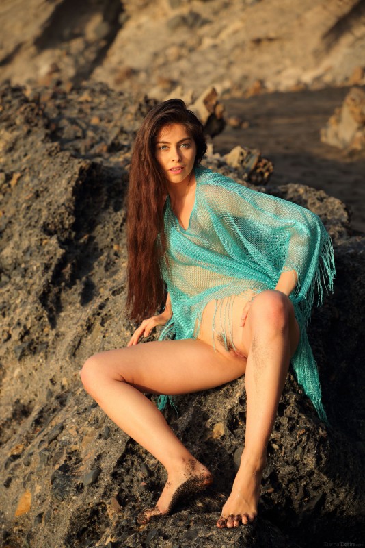 Скинув с себя прозрачную накидку и выставив на показ свои возбуждающие прелести, голая девушка с подстриженным волосатым лобком эротично позирует на пляже. Забравшись на здоровый камень, горячая красотка с упругими сиськами раскрыла перед солнцем свою промежность с бритой розовой писькой.
