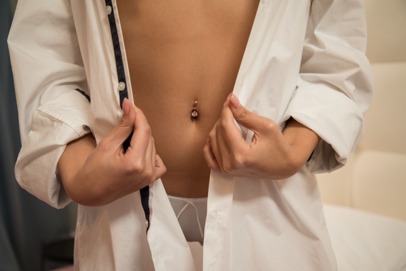 Расстегнув на себе рубашку и выставив на показ перед камерой свои сочные упругие сиськи, шикарная телка медленно снимает с себя всю одежду и эротично позирует в постели. Страстно проводя руками по гладкой коже, сексуальная девушка приглашающе раздвигает перед нами свою длинные ноги и крупным планом подставляет вперед бритую промежность с манящей сладкой дырочкой между губками.