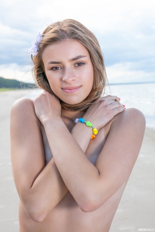 Пользуясь тем, что на пляже почти никого нет, молодая шалунья в купальнике медленно оголила перед камерой свое стройное гладкое тело и показала нам свои маленькие сиськи с розовыми сосочками. Энергично меняя разные поза, развратная нудистка не стесняется выпячивать крупным планом свою голую промежность и во всей красе демонстрировать желающим нежную сладкую писю.