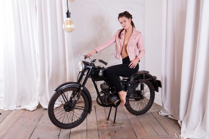 Страстно сорвав с себя всю одежду, молодая сексуальная байкерша с красивой упругой попой развратно позирует голышом на мотоцикле. Страстно оседлав его, горячая штучка с широко раздвинутыми ногами бесстыже демонстрирует нам свою бритую промежность и даже выпячивает ее крупным планом на камеру.